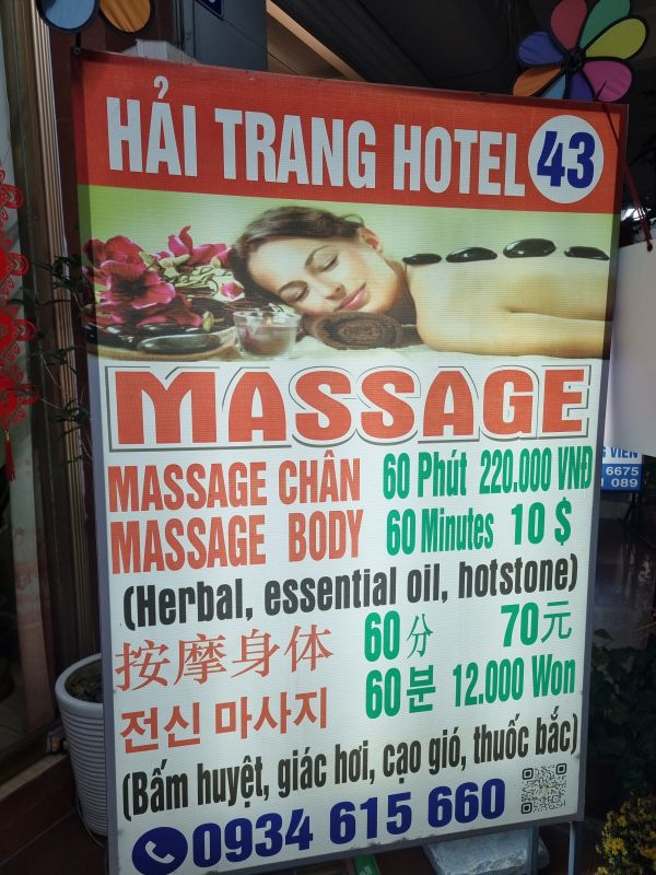 가족끼리 갔다왔습니다. 수족관 근처에 있습니다. 지리적으로는 좋습니다 5-6인 이상부터 차량 지원 나갑니다 참고하십쇼 그리고 관리사들이 마사지중 너무 자기들끼리 떠듭니다. 그리고 시간도 정확하게는 채우지 않았습니다. 가성비로 방문을 한다라하기엔 팁을 시간당 10만동 (1인기준)으로 받아갑니다. 그래서 총체적으로 계산하면 가성비로 보기엔 어렵습니다.